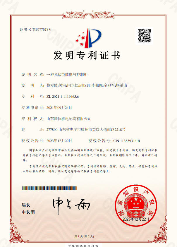 山東國(guó)恒機(jī)電配套有限公司簡(jiǎn)      介 山東國(guó)恒機(jī)電配套有限公司是一家集新能源、高科技、智能化生產(chǎn)研發(fā)、制造、銷售為一體的綜合性現(xiàn)代化高新技術(shù)企業(yè),公司座落在魯班故里、墨子之鄉(xiāng)滕州,公司始建于2005年,注冊(cè)資本1億元,擁有各類中、高級(jí)專業(yè)技術(shù)人員100余名。主營(yíng)業(yè)務(wù)涉及高科技智能電力裝備、新能源儲(chǔ)備輸送,220kv及以下輸變電工程勘察設(shè)計(jì)、制造、銷售、安裝、售電和智能充電樁能效運(yùn)維,并從事生產(chǎn)制造交直流充電樁設(shè)備、成套開關(guān)設(shè)備、各型號(hào)高低壓開關(guān)柜、箱式變電站等電氣設(shè)備,是棗莊地區(qū)唯一一家國(guó)資入股的新能源高端品牌企業(yè)。公司擁有獨(dú)立… 【查看更多】